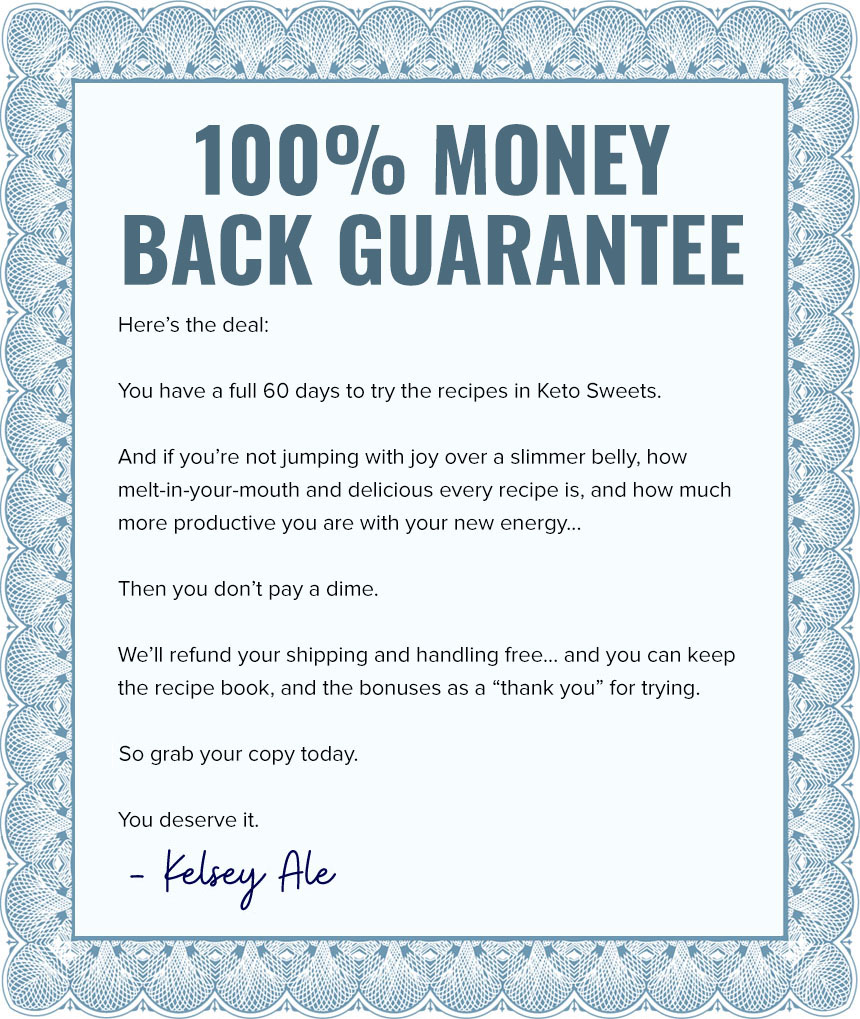 And I’m even going to make sure that you don’t risk a penny when you pick up a copy of Keto Sweets today.