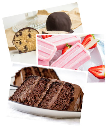 such as Vanilla Ice Cream… Almond Butter Brownie Bites… Chocolate Covered Bacon Bites, Oreos… and Lemon Meringue Pie…